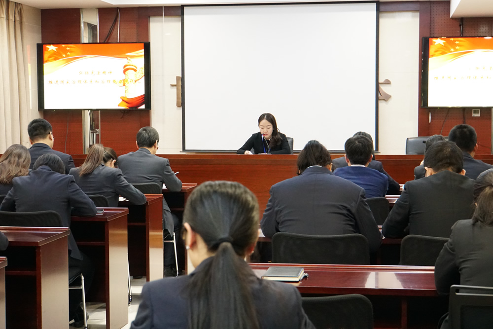 为深入学习贯彻党的十九大和十九届四中全会精神,弘扬宪法精神,增强宪法意识,推动宪法实施,在12月4日第六个国家宪法日,担保集团召开宪法专题宣讲会,公司领导、各部门负责人和全体员工参加会议。