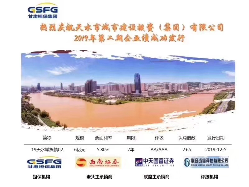 担保集团承保天水城投2019年第2期 企业债成功发行
