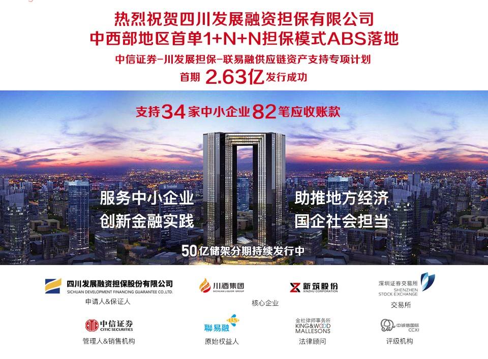 为认真贯彻落实四川省委省政府、四川金控集团关于金融支持实体经济发展的工作要求,四川发展融资担保股份有限公司(下称“发展担保”)坚守服务全省实体经济发展的初心和使命,切实履行普惠金融支小支微的社会责任,充分发挥自身作为四川省最大的AAA增信机构优势,创新思维、创新模式,以发起人、担保人身份,联合中信证券、腾讯旗下联易融等行业一流专业机构,在深交所发起设立了50亿元储架供应链ABS项目。